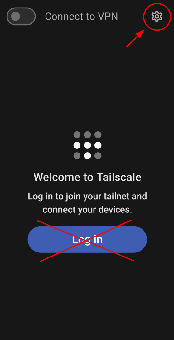 Back in Tailscale, tap the gear (settings) icon in the top-right.