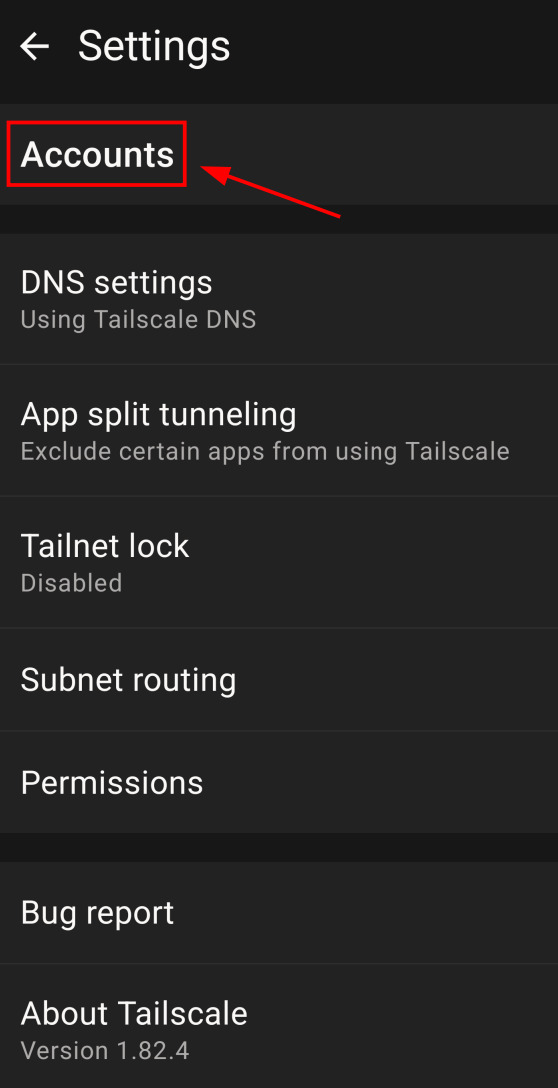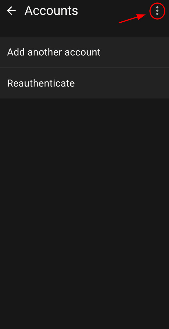 On the Accounts screen, tap the ⋮ (three-dot) menu in the top-right.