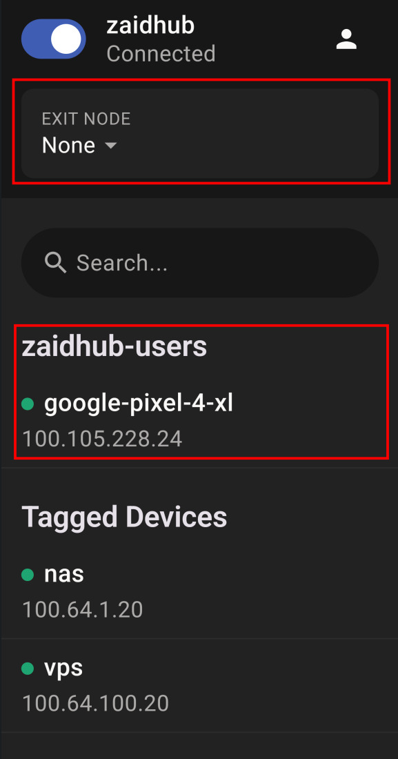s.zaidhub.com) while Tailscale is connected.Click an image to zoom.